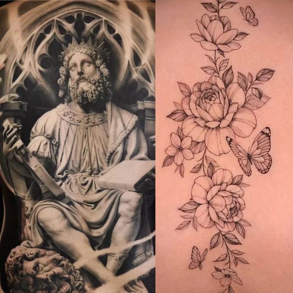 Highly skilled in floral tattoos, seamlessly blending ultra-fine lines with the natural flow of the body.
